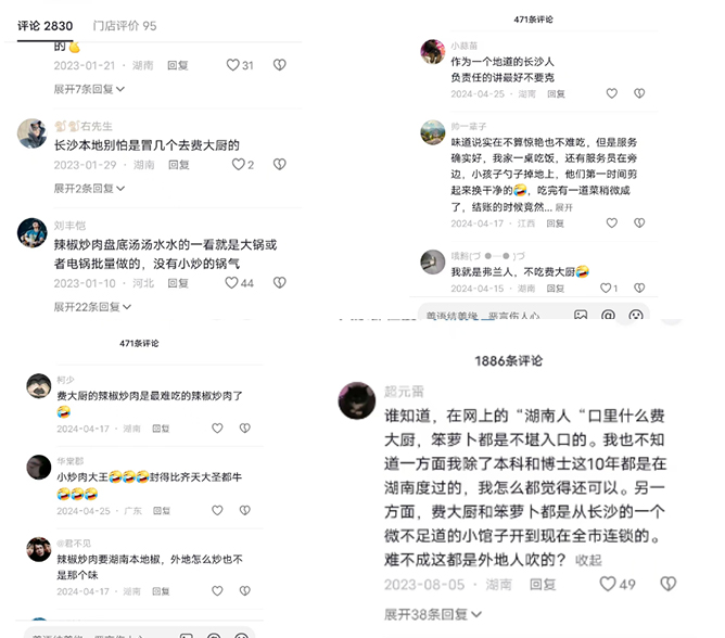 “费大厨和笨罗卜这些都是从一个微不足道的小馆子到现在知名湘菜品牌,本地人不吃?难不成是外地人吹起来的?”