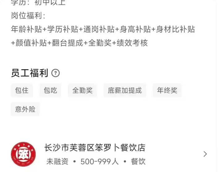 但作为受关注度较高的餐饮品牌,这则招聘启事仍引发了广泛讨论。