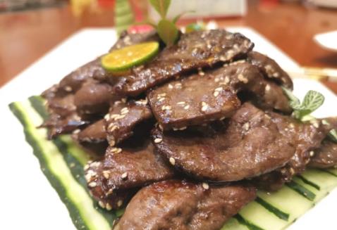 香煎羊肝,羊肝洗净,切大片,入碗放生粉、红酒、橄榄油拌匀,腌制15分钟;热锅冷油,羊肝入煎锅小火慢煎,撒黑胡椒、海盐少许;煎好一面,翻过来再煎另一面;起锅装盘按位上,彰显大气。