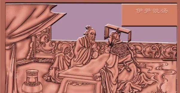 商朝第一个君王商汤招贤,当时还没有科举制度,所以都是采取直接面试的方法。伊尹就背着一口大鼎和菜板跑到商汤面前大说了一番烹饪之道。大致就是,想要做一道好菜,选材很重要,想要味道好就要懂得调和,治国和做菜是一个道理,选食材就是选人才,用人就好比调和味道等等。伊尹以厨道喻治国,给了商汤很大启发,觉得他讲的非常有道理,于是伊尹被封为丞相。