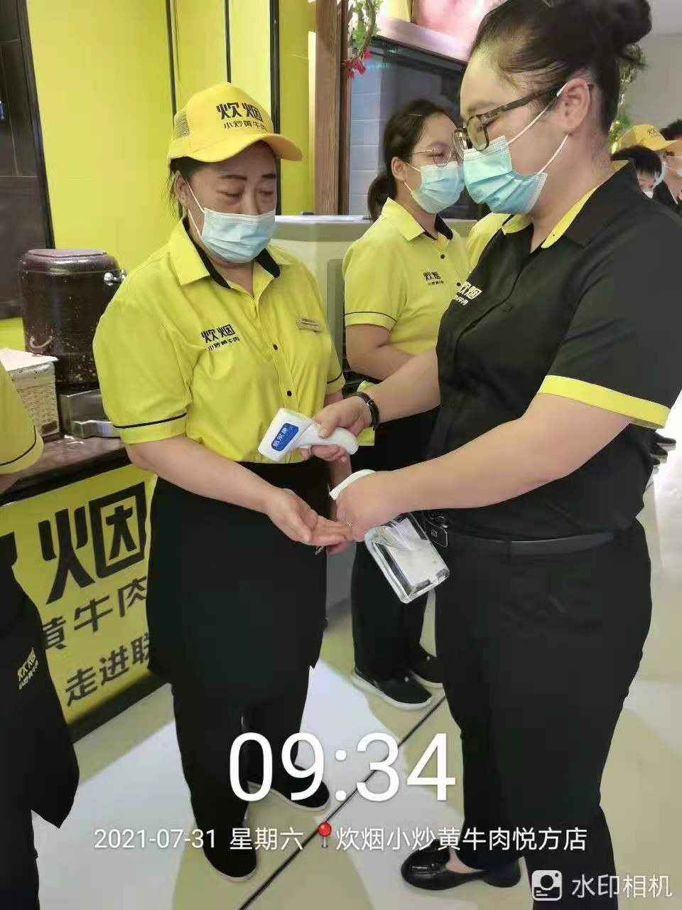 要求员工日常防护工作,如戴口罩、常洗手,每日出示健康码、行程码,每日常规测量体温并适时登记监控。同时,炊烟百分之九十的员工已经接种新冠疫苗,未接种疫苗员工暂时待岗。接下来炊烟下一步会出台更多、更精细化防疫措施,保证每一位前来就餐食客的安全。