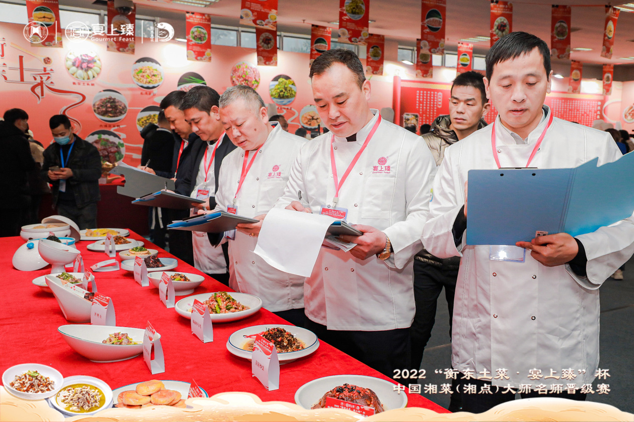 2022年1月5日,由湖南省餐饮行业协会主办,湖南聚味堂食品有限公司独家冠名,长沙商贸旅游职业技术学院、《湘菜》杂志社、衡东县土菜行业协会、湖南省14个地市州餐饮协会共同协办的2022“衡东土菜·宴上臻杯”中国湘菜(湘点)大师名师晋级赛在长沙商贸旅游职业技术学院湘菜学院举行。来自各地的100余名资深大厨现场实操,通过指定菜+自选菜全面地展示湘厨的精神风貌与烹饪功底。