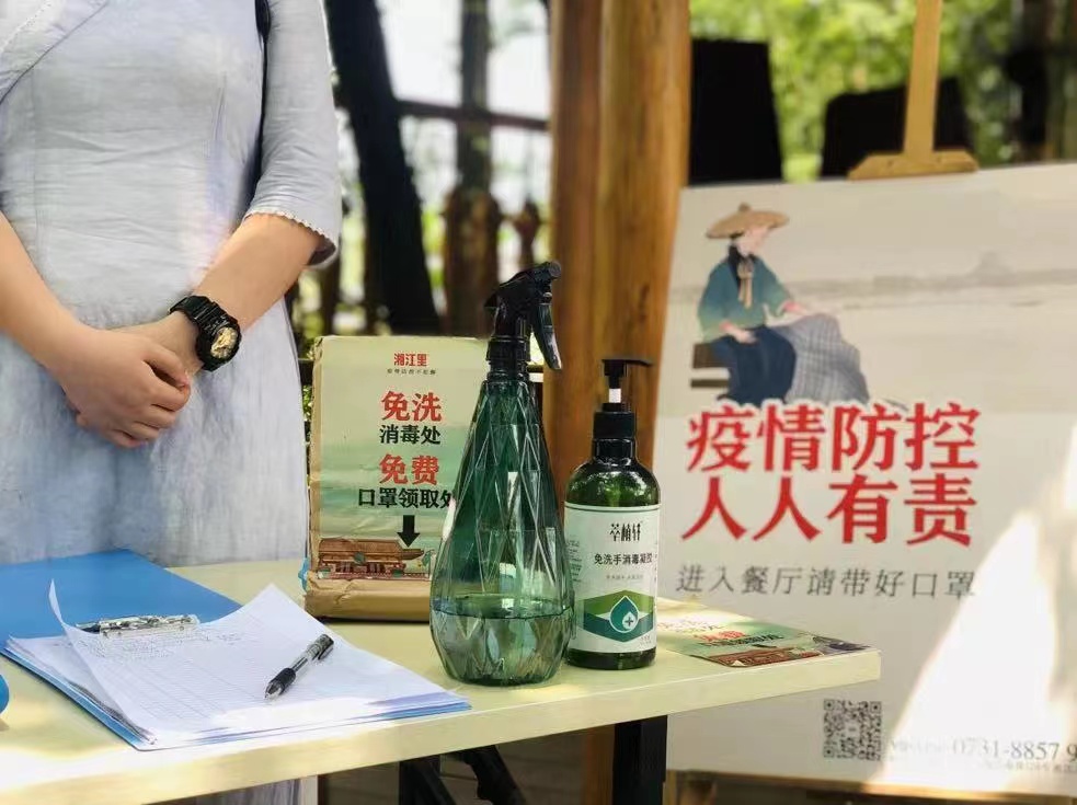 疫情来临,对餐饮来说,门店内的防控措施是重中之重。自3月21号起,湘江里·老渔村门店营业额下滑95%。虽然门店地处偏远地区,湘江里并没有丝毫懈怠,坚决做好门店防控,工作人员严格进行卫生管理,桌椅、餐具进行消毒,对来店顾客进行健康码、行程码查验、体温测量后方可入内。
