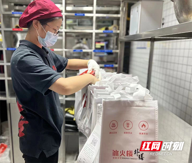 3月21日,芙蓉区商务局按照长沙市芙蓉区新型冠状病毒肺炎防控指挥部分工要求,紧急联系冰火楼、协调辖区友阿集团旗下711便利店、家润多超市等重点应急保供企业,为封控区居民提供早、中、晚一日三餐,确保封控区内居民正常生活需求。“刚接到这项送餐任务时,压力很大,当时芙蓉区已经暂停聚集性活动,餐饮也停止了堂食。为了保证首批近5000份套餐安全、高质量送达,我们即时成立了应急保供小组,由董事长挂帅。采购、清洗、切配、烹制、包装、运输,每个环节都高度重视,食品安全督查员对食材质量把控。”汤优介绍,在冰火楼团队高效合作下7天的时间,累计供应4万余份套餐。