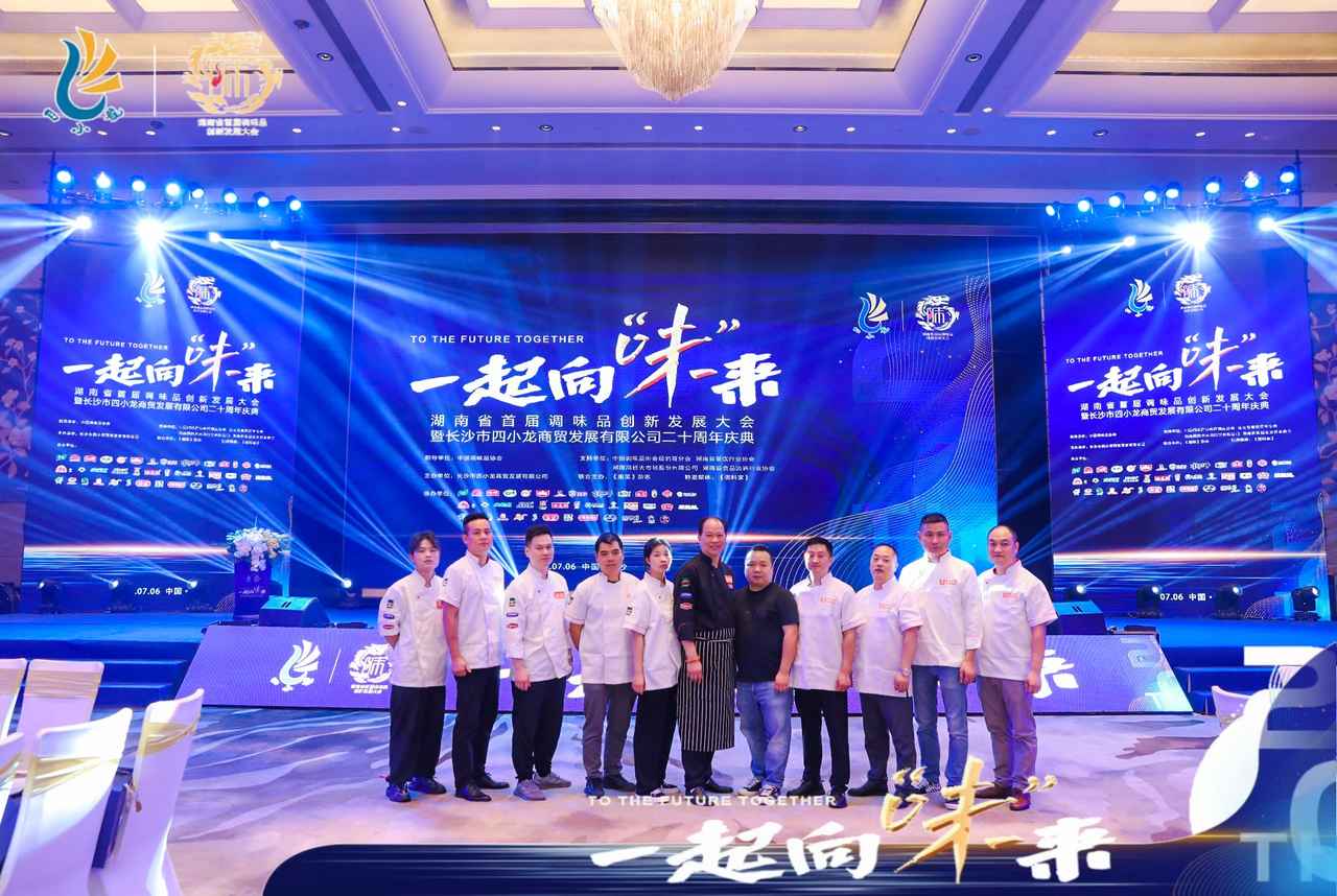 二十年砥砺前行,二十年初心不改,万众期待下,现场嘉宾倒数,一起见证长沙市四小龙商贸发展有限公司二十周年庆典仪式正式开启,本次调味品大会拉开帷幕。现场,唱起振奋人心的一起向“味”来歌曲,鼓舞餐饮人不忘初心,继续前行。