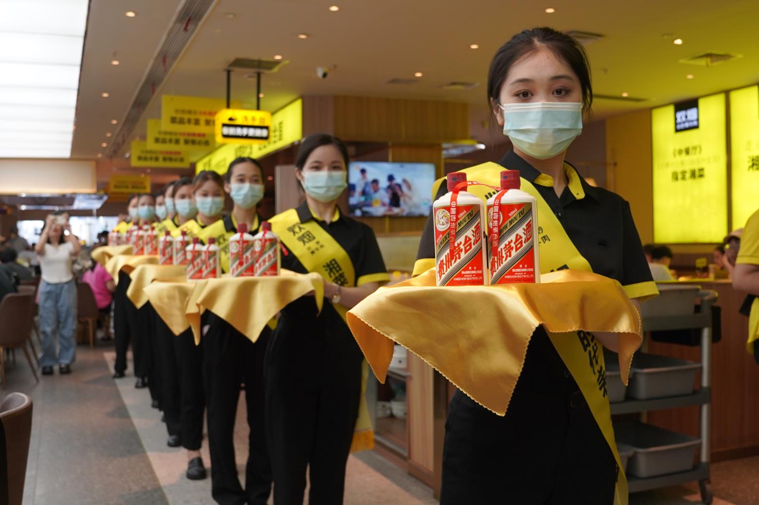 “喝茅台在中国人的聚餐中是待客的至高礼仪,聚餐顾客对菜品、酒水的品质要求也与日俱增。顺应这样的品质需求,我们选用飞天茅台搭配9大经典湘菜,也是为他们提供更好的聚餐服务。”炊烟品牌负责人戴先生告诉记者。