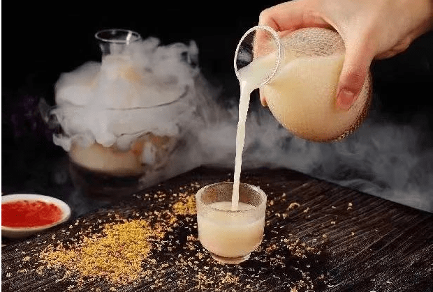 除了前面提到的两款菜品,火宫殿市府店在饮品创新上也有自己独到的见解。比如,为满足年轻人猎奇的需求,研发出一款网红饮品桂花酿米酒,酒精浓度不高,甜味不重,吃到嘴里是糯糯的口感,干冰呈现烟雾缭绕的氛围,有客人品尝后连点十扎。饮品做得好,不但能提升餐厅的美誉度,还能有效提高餐厅利润。